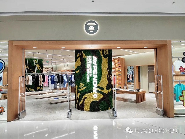 鴿恩照明深度解讀AAPE品牌的內(nèi)涵與調(diào)性,從店鋪的空間布局、陳列出發(fā),代入顧客與銷售兩種不同的視角與心理感受,營(yíng)造出活力明快的光環(huán)境。